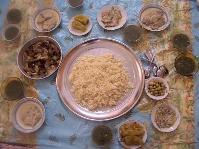 Lækker traditionel palæstinensisk mad – ris, kylling og kød – serveret og lavet af Mohammads mor